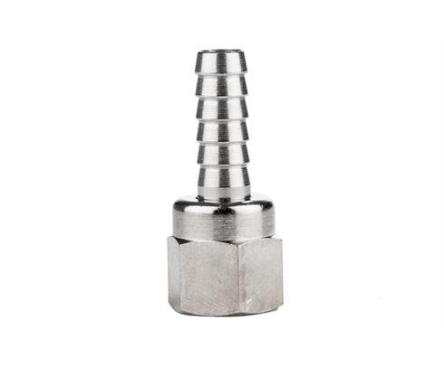 7 mm slangenippel med mutter for tilkobling på MFL gjenger. Laget av rustfritt stål.