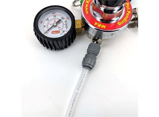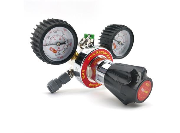 MK4 CO2 regulator. Presis regulator av høy kvalitet. To manometere, overtrykksventil og ett uttak. Denne regulatoren kan brukes til CO2 eller blandingsgass CO2/Nitrogen.
