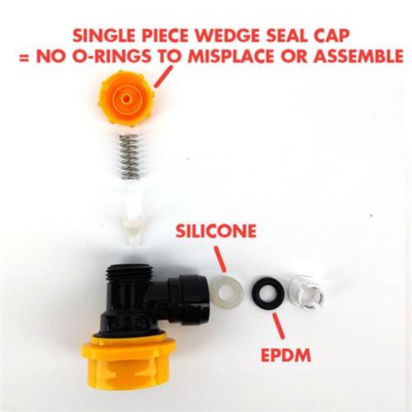 Denne geniale koblingen fra Kegland gjør at man slipper å bruke ball lock med gjenger + overgang med hurtigkobling. I tillegg er den mye mer kompakt og har 90° vinkel. Høyden gjør at Corneliusfat kan stables med koblinger festet på fatet!