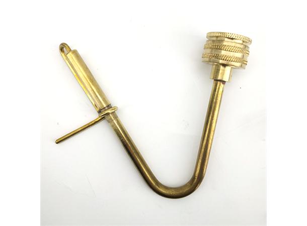 Flaskespyler til å sette på kjøkkenkrana. Det kan hende du må ha en overgang for gjengene. Det er vanlig halvtoms gjenger på denne. Når du trykker flaska ned, så spyler vannet inn i flaska.
