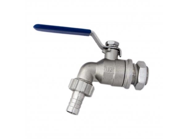 Kran i rustfri 304 kvalitet med avtagbar slangetilkobling. Passer i hull Ø21 mm. Slangestuss er Ø9,6 mm