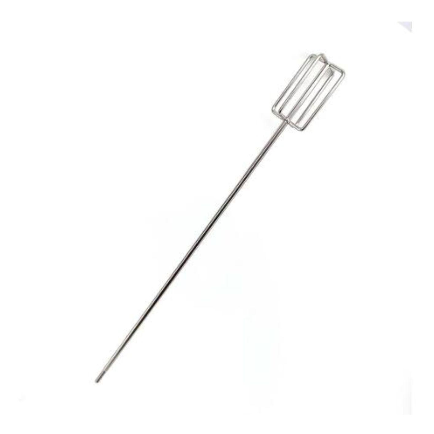 Dette er en hendig rørespade beregnet for bruk med drill, for å enkelt løse opp maltet jevnt og unngå deigballer i mesken. Røremikseren i rustfritt stål festes enkelt til elektrisk drill. Enden av mikseren har 6mm(1/4″) spor og passer til de fleste elektriske driller.
