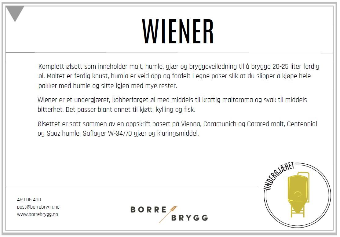 Wiener er et undergjæret, kobberfarget øl med middels til kraftig maltaroma og svak til middels